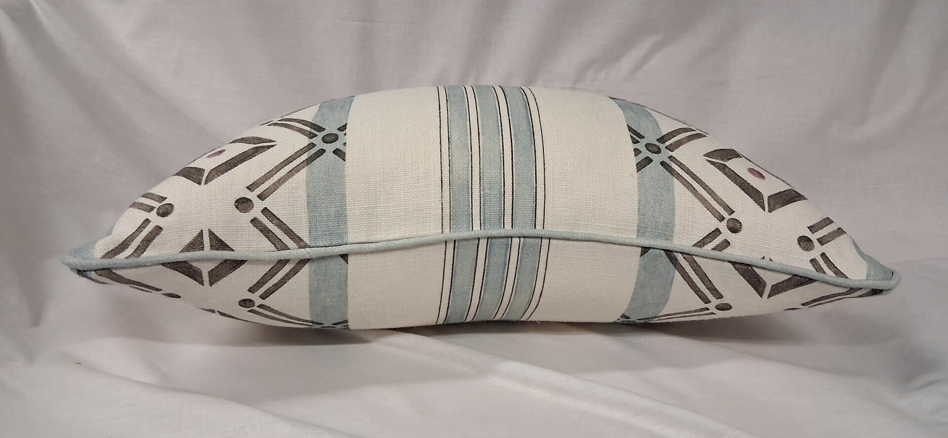 Cojín en tejido 100x100 lino estampado en un orijinal diseño de Natural Fabrics. Terminacion cordón en el mismo tejido